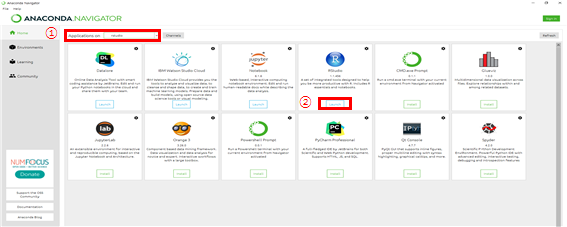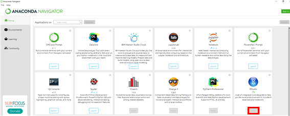 ANACONDA NAVIGATOR를 실행을 시키고 RStudio를 설치를 한다.