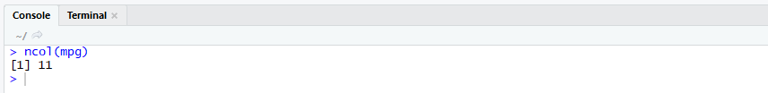 ncol() : data frame의 column의 개수를 구하는 함수. 선형구조에 적용 불가능.