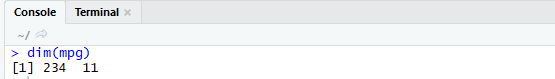 dim() : data frame의 행과 열의 개수를 구하는 함수. 선형구조에 적용 불가능.