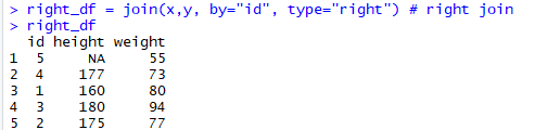 right join : left join과 반대로 오른쪽 테이블의 key을 기준으로 병합한다.