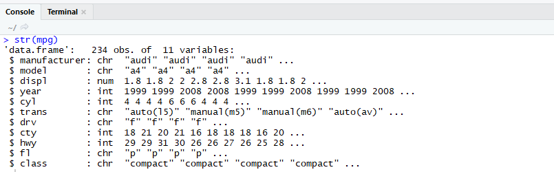 str() : 데이터에 들어있는 column들의 속성을 확인하기 위한 함수.