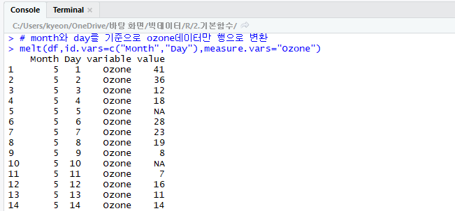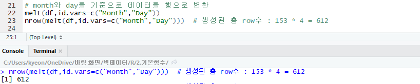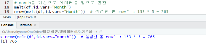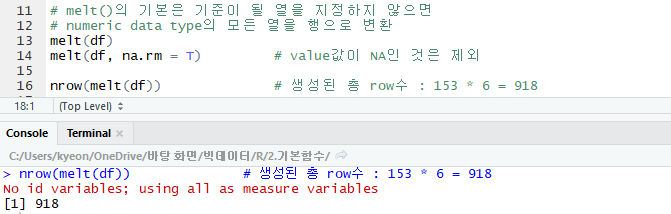 melt() 함수를row 수가 153 * 6 =918이 된 것을 확인할 수 있다.