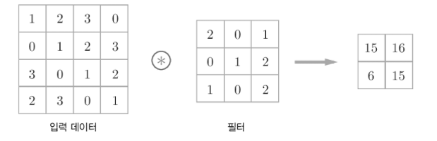 합성곱 계층에서의 합성곱 연산을 처리한다. 합성곱 연산은 이미지 처리에서 말하는 필터 연산에 해당한다.