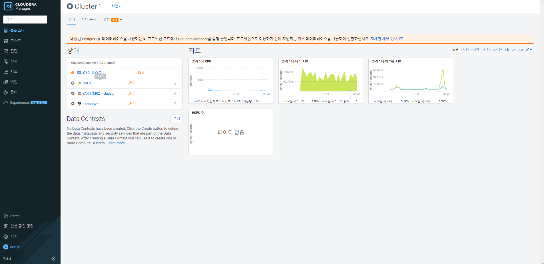 http://(ip or hostname)7180로 접속을 한다.