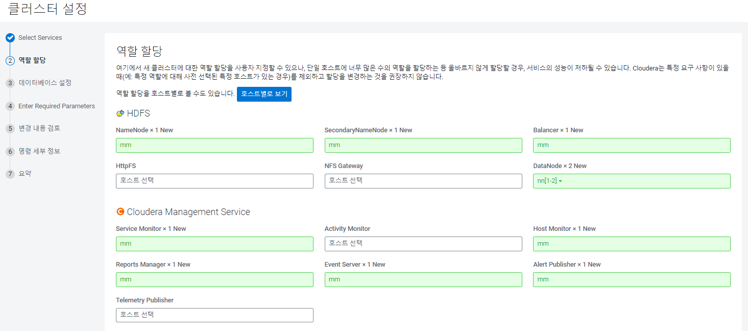 Cloudera Management Service 호스트 설정
