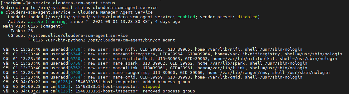 ※참고 status 명령어 : sudo service cloudera-scm-server status